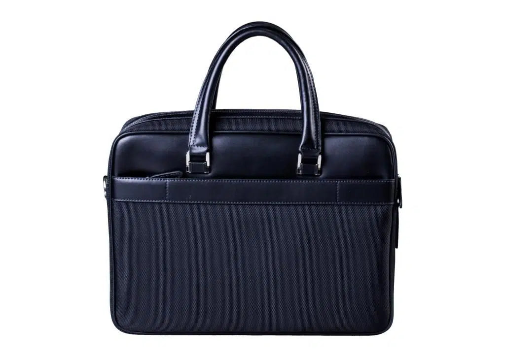 The exterior of the brief case boasts a full-length zippered front pocket and a slip pocket on the back, providing additional storage options for quick access to items such as smartphones, pens, and business cards.