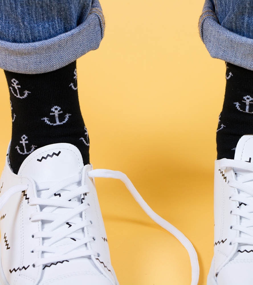 ANCHOR MAN BLACK/WHITE SOCKS - MEDIUM