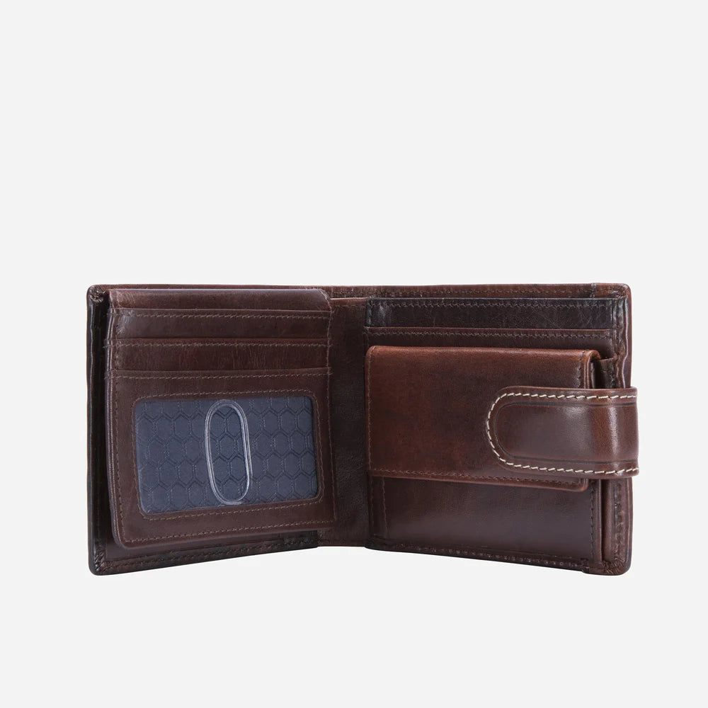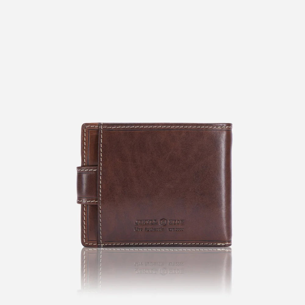 BIFOLD WALLET WITH COIN AND TAB CLOSURE COFFEE