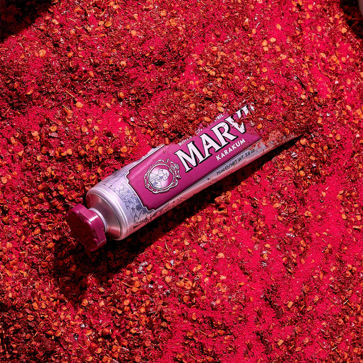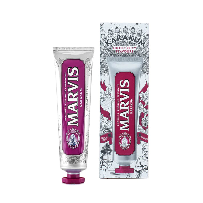 Marvis's Karakum Toothpaste takes inspiration from travels across the Black Sea to Persia and exotic Eastern China. A toothpaste with a sophisticated flavour that combines the finest peppermint with the sweetness of orange juice along with the enchanting and aromatic cardamom, a rare oriental spice to create a lasting sensation of alluring freshness. The creamy formulation combines peppermint with the sweetness of orange juice and aromatic cardamom.