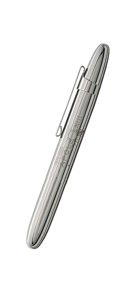This Special Edition Bullet Space Pen has the same pressurized ink refill cartridge used on the Apollo 13 Mission - It defies gravity, writes in the harshest of environments, and is still used on all manned space flights today.