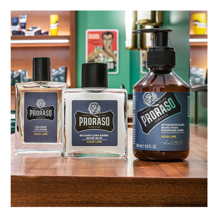 Proraso Azur Lime Beard Wash is a gentle, yet effective, cleanser for both beard and skin. Using plant-based surfactants, this low-foaming formula works to soften and smooth even the most bristly of beards while removing dirt, debris and odours. The exclusive Azur Lime fragrance features the intoxicating freshness of citrus interwoven with hints of energetic mint and juniper. Moss, woods and patchouli give richness and rinses, resulting in an original and balanced sensory mix. To use - simply wet beard with warm water and massage thoroughly. Rinse well. Saison is an official stockist of Proraso in Australia. Made in Italy. 200ml.