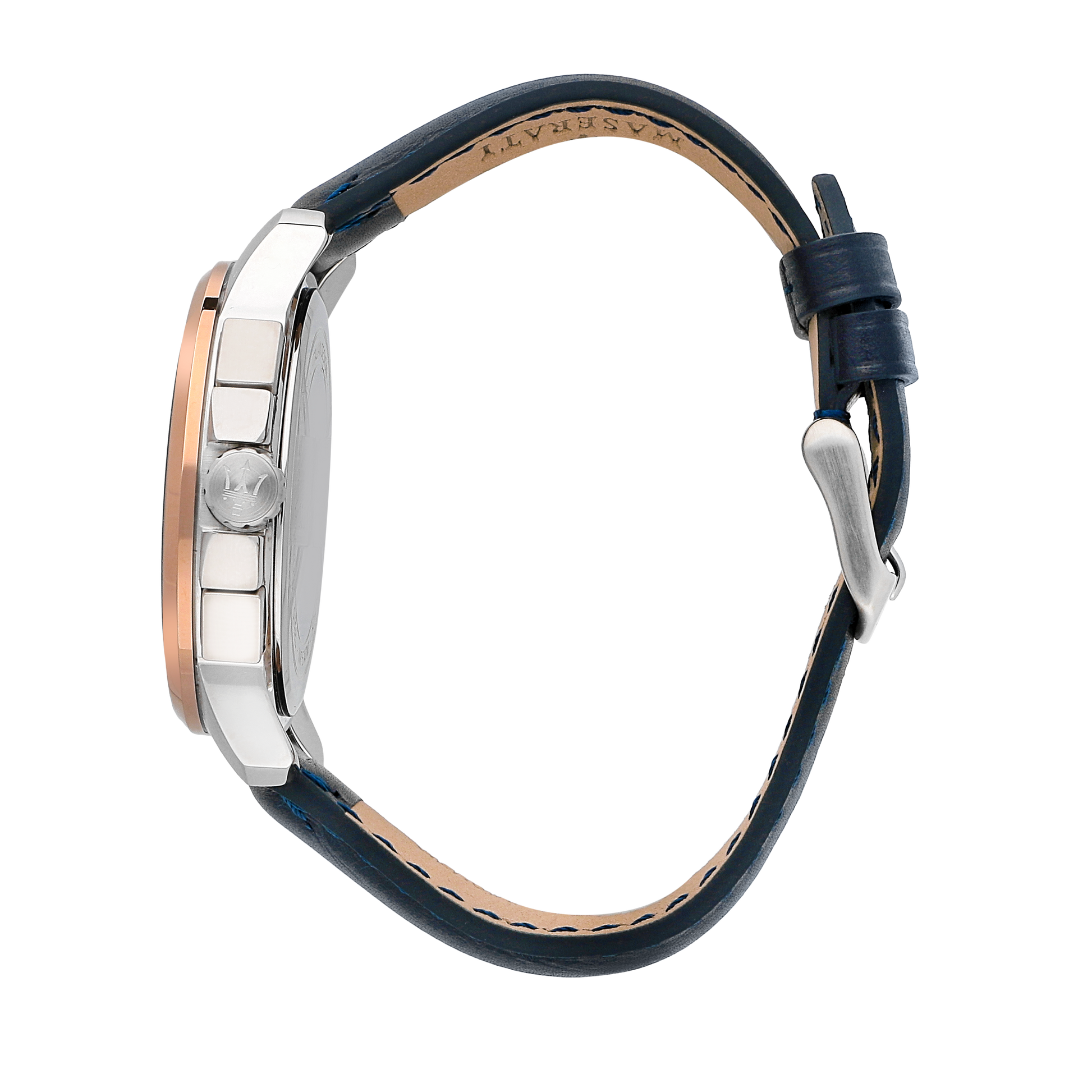 A sporty mood and renovated design for the chronographs of the Successo Collection sets them a class apart. Presenting the Maserati Successo 44mm Navy Blue Chronograph, a sports watch for the elite. A sports collection and in step with the times. Bracelets with simple lines combine with dials with complex shapes, which elegantly enrich the models of this collection. The sturdy steel case encloses dials with bright and contrasting details. The dials, with refined colours, are perfectly matched with steel bracelets or leather straps, which alternate in models and shapes. The counters give the models of the Successo Collection a decidedly sporty chic look. Another distinctive detail of all the watches in the collection are the luminous indexes and hands that enrich the dials with light and give an extra touch of sportiness.